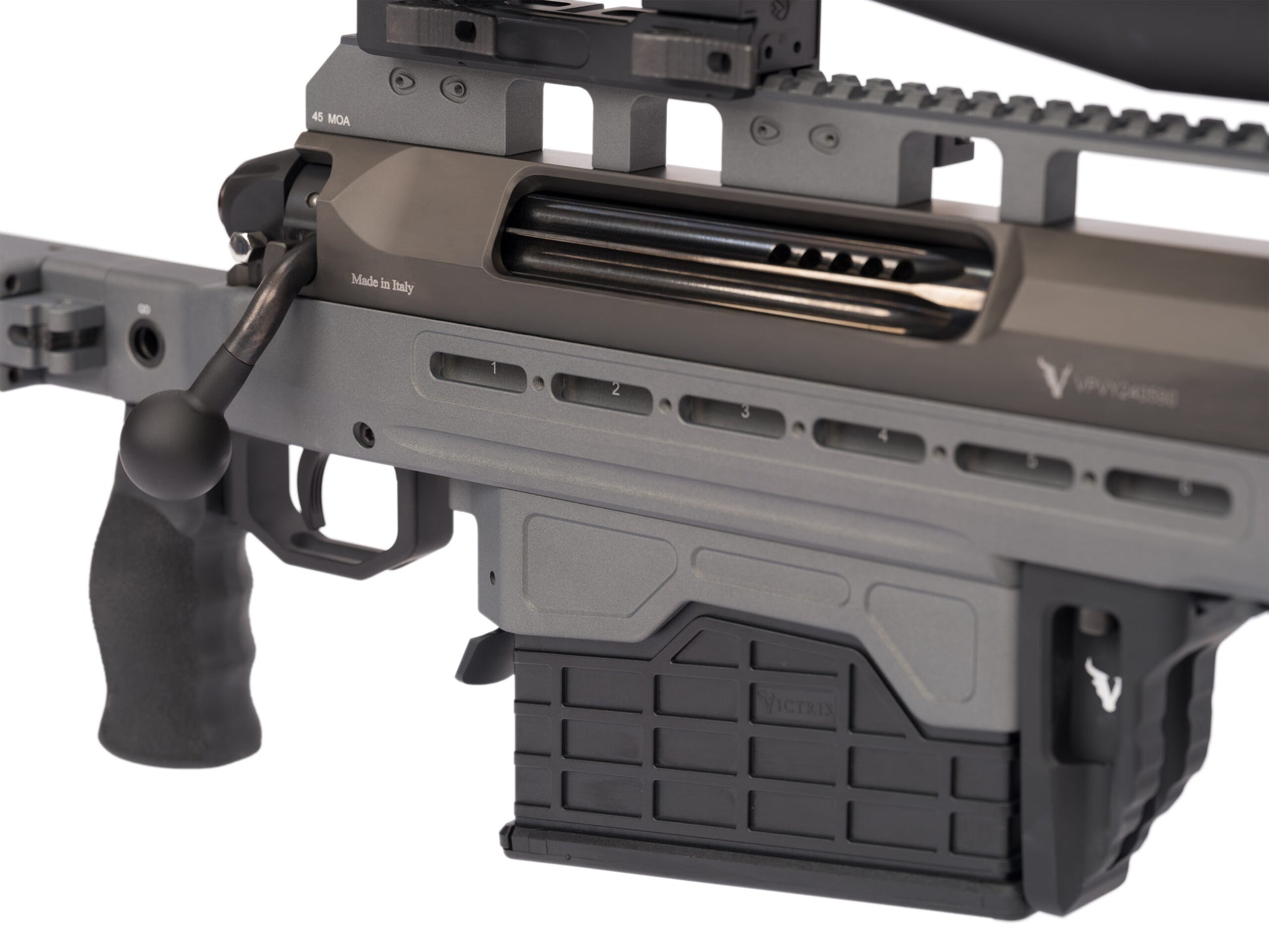 Featuring a 45 MOA integrated rail system, ROME bipod and monopod, and a specially engineered Victrix muzzle brake with fallout reduction, the Tormentum Shorty balances recoil control and compactness like no other .50 BMG rifle on the market.