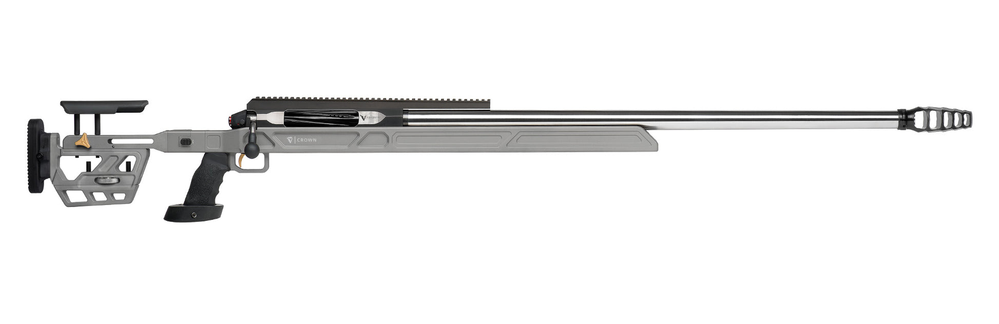 From its 5-port ProAngle brake and adjustable stock system to its 45 MOA action rail and palm-shelf grip, every detail is tailored to maximize long-range performance and shooter control. The Victrix Crown is more than a rifle — it’s a tool built for elite marksmen pushing ballistic limits.