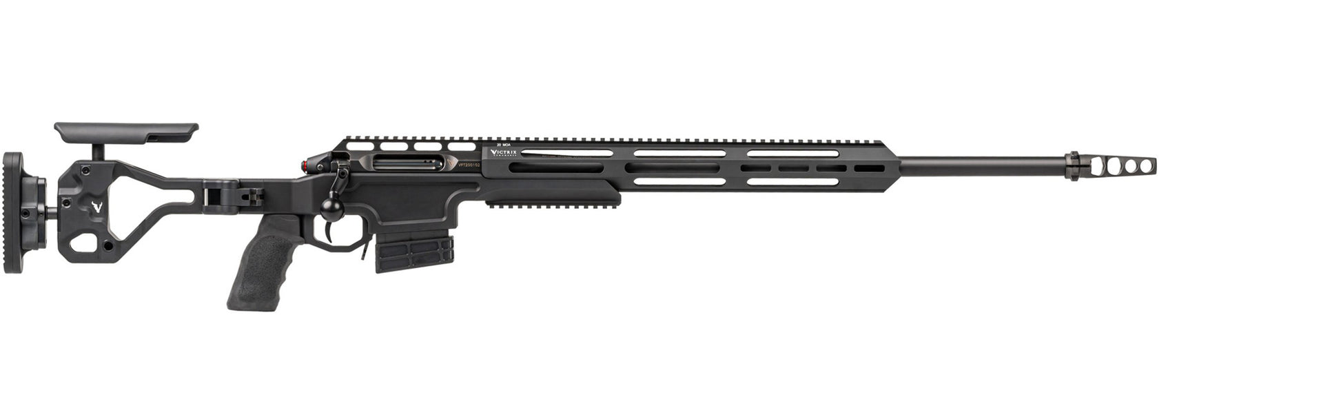 The Victrix Gladio T is a tactical precision rifle built for field-ready reliability, repeatable accuracy, and rugged endurance. Chambered in .308 Win, .260 Rem, or 6.5 Creedmoor, the Gladio T is built around a rigid monobloc aluminum chassis with an adjustable folding stock, match-grade 26” barrel, and MIL-STD compliant forend for full accessory compatibility.