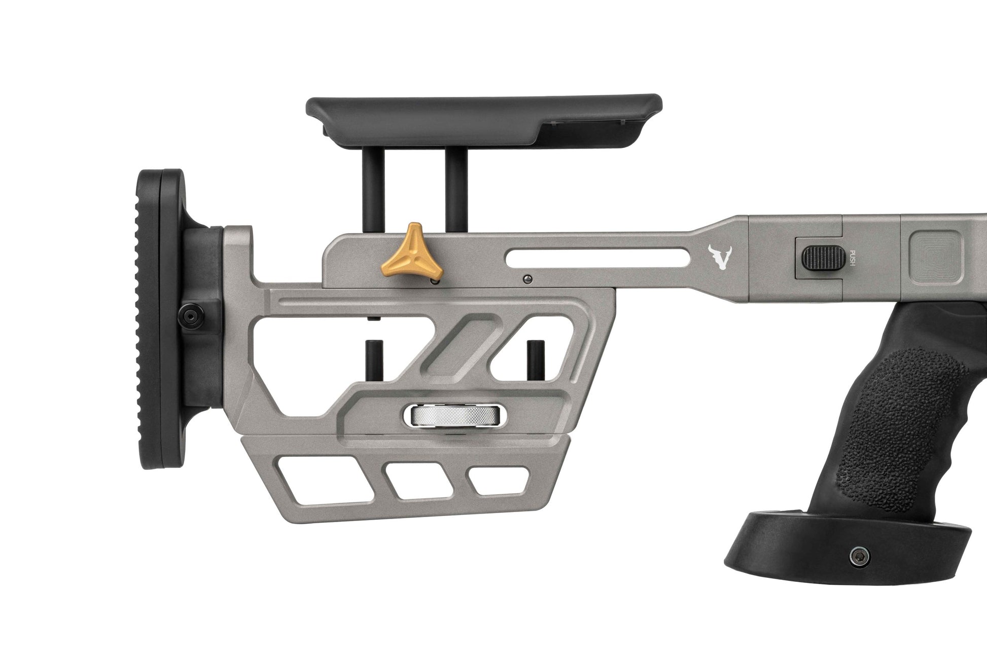 The Victrix Throne is a purpose-built ELR Tactical rifle, engineered for shooters operating at the extreme edge of long-range capability. Chambered in .375 CheyTac® or .408 CheyTac®, this advanced rifle combines a 38” lapped barrel with a reinforced monobloc chassis, folding stock, and a 7-round magazine to support sustained engagements at distances few rifles can reach.